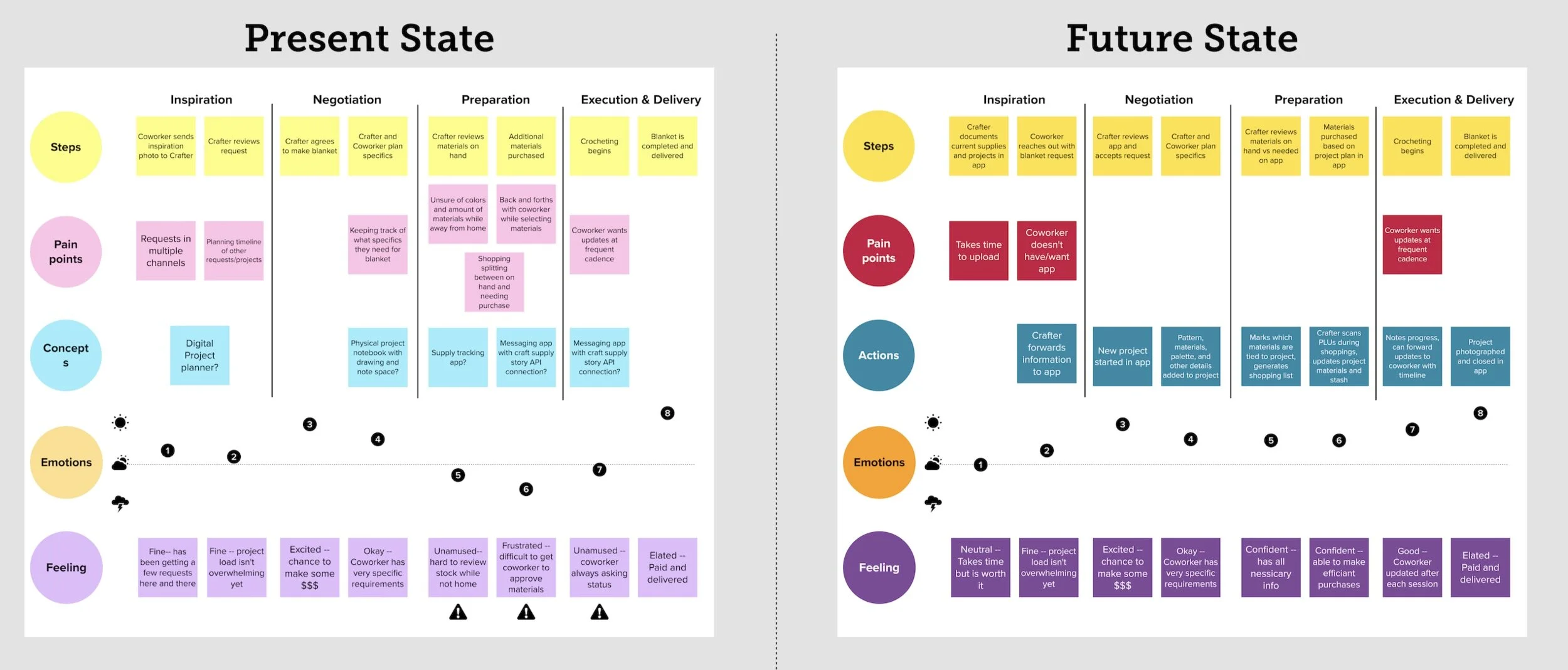 The holidays are looming and the focused crafters are in production mode. They're making gifts for the people in their lives, but they're also making gifts to be given by others that have specific guidelines to be followed. Mapped above is the journey for crocheting a blanket commissioned by a coworker.